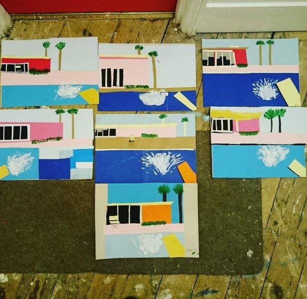 Another Saturday and another great Art Club. This week I decided that we would look at David Hockney’s A Bigger Splash painting. Maybe I’m dreaming of lying poolside in the LA sun. Wishful thinking.