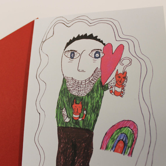 As I write this blog I realise I have made way more Valentine’s related goodies than I’d thought. Perhaps I’m a hopeless romantic at heart after all. I do wonder though what message I have inadvertently sent out to my kids in this department. Is their view of love a little off kilter because we made them watch Napoleon Dynamite and Wes Anderson films too often. I’ll let you make up your own mind. Here are a couple of cards by my son. He was about 10 when he made these drawings. I loved them instantly and stole them away pushing aside the ever so slightly worried parental voice in my head. These cards are perfect for that unrequited love in your life….I’m not going to use the word stalker but…..Or perhaps it’s your cat who gets all your adoration and …..smothering.